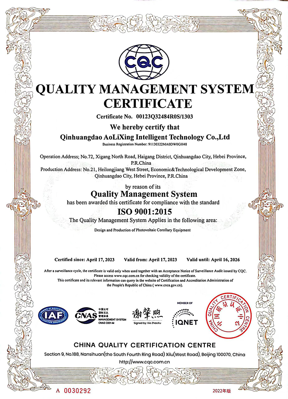 一種光伏邊框型材精準翻轉分料裝置實用新型專利證書